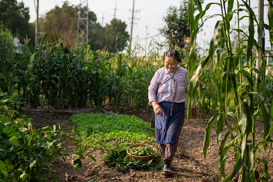 母亲出生于1938年的上海浦东农村,80多年来一直生活在这里。岁月的磨砺已经化作母亲脸上数不清的深深浅浅的皱纹,宛若秋叶渐枯的脉络。母亲渐渐地老了。 年少时,我曾渴望早早地离开母亲去远行;但现在,我却更多地想回到母亲身边,多多陪伴母亲,想挽留岁月匆匆的脚步。 2017年的某一天,我发现素常无奇的母亲在朝阳里在夕日下,稀疏的发丝和褶皱的笑容美成了一幅画。于是,我拿起相机开始记录母亲的日常生活。 母亲一开始并不习惯我的拍摄,后来渐渐地习惯了镜头。勤劳的母亲干了一辈子的农活,她一直走在乡间的路上,呼吸着乡村新鲜的空气,闻着泥土的芬芳;她遵循着农作物生长的自然规律,爱着宅前屋后生动的田园颜色,用自己的日出日落描绘着属于自己的风景。母亲居住在三间小屋里,小屋前面的水泥场就是她生活的舞台,这里有养鸡喂食、缝缝补补、劳作休憩、邻里叙旧的美好时光,这里也有孤独惆怅、叮咛嘱咐和对未来生活的期盼。每逢过年,母亲的仪式感很强,她最喜欢在门上、墙上贴满春联和“福”字。她用面粉自制浆糊,用她那代人传统的上浆方式完成粘贴任务,就在那满屋的红色字里,是她独有的年味。 母亲是一束温暖而慈爱的阳光,无论是她的专注、回眸,攀高、下田……只要母亲出现在我的镜头里,我的心里就幸福而安然。勤劳、朴实、节俭、乐善、热爱生活的母亲,既属于我,也属于这个时代。 而我在讴歌母爱的同时,也不经意间从侧面记录了浦东农村一个时代的样貌。各种农具,各种生活用品,家门口做圆子、包馄饨等场景,都能勾起上海人乃至江南人的美好回忆。在一日千里高速发展的浦东,多少人行色匆匆,能够停下奔忙的脚步,看一看自己出发的起点?我记录的这些有关母亲的影像里,有故事,有快乐,有情感,有牵挂,有记忆,有很多时间之外的千万无声的言语,是对母亲养育之恩的感怀。 出工,“母亲的日常”系列,2020-2023 年 叮咛,“母亲的日常”系列,2020-2023 年 田园华尔兹,“母亲的日常”系列,2020-2023 年 丝毫不差,“母亲的日常”系列,2020-2023 年 收获之乐,“母亲的肖像”系列,2020-2023 年 现场走秀,“母亲的日常”系列,2020-2023 年 真清爽,“母亲的肖像”系列,2020-2023 年 老顽童,“母亲的日常”系列,2020-2023 年 潘仁芳 中国摄影家协会会员,2021年出版《母亲》摄影画册,作品《我和母亲心手相拥》曾获第十三届上海市摄影艺术展纪录类金奖。曾在上海浦东图书馆举办《母亲》专题摄影展。