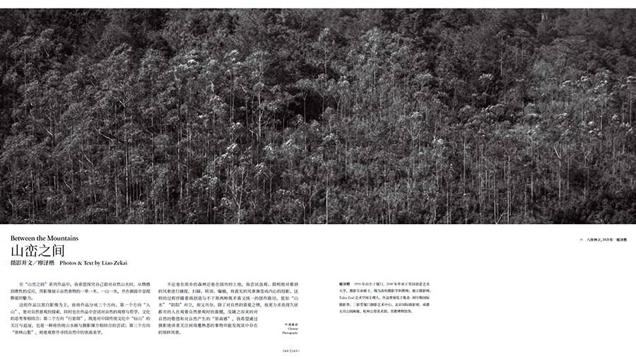 新一期杂志里 呈现以下精彩内容 资讯 · 资讯 专题 风起香江 · 风起香江——20世纪五六十年代香港沙龙摄影的启与承 文/王江 · 香港《摄影画报》昔日的“朋友圈” 文/伍小仪 · 翻开背面:20 世纪五六十年代香港沙龙摄影中的文化、政治与身份 文/杨岳 海外 · 克里斯托弗· 威廉姆斯:R59C 凯斯通浴室门——镀铬/ 雨花玻璃 摄影/克里斯托弗· 威廉姆斯 编译/陈秋实 现场 · 翟永明:摄影并非我诗歌的图解,它们互为参照 采访并文/钟华连 本土 · 梭戛故事 摄影并文/杨安迪 影廊 · 850nm 摄影并文/林煜涵 · 孤独星球 摄影/黎晓亮 文/鲁明军 · 隐逸的白鹿 摄影并文/李小舟 · 山峦之间 摄影并文/廖泽楷 论谈 · AI 摄影与GPT 图像 文/刘灿国 专题 |风起香江 香港融汇东西的社会文化,不仅在中国,甚至在世界范围内都是一个 独特的存在。20 世纪五六十年代是香港沙龙摄影的黄金时期,摄影 家们充满现代主义精神的影像探索,对于现实题材的关注视角以及与 国际摄影文化接轨的态度,深刻影响着20 世纪下半叶以来中国当代 摄影文化的走向。他们的作品勾连起香港与内地摄影文化交织融汇的 历史,映射出构建本土摄影文化的尝试与努力。 香港《摄影画报》昔日的“朋友圈” 文/伍小仪 翻开背面:20 世纪五六十年代香港沙龙摄影中的文化、政治与身份 文/杨岳 【海 外】 克里斯托弗· 威廉姆斯:R59C 凯斯通浴室门——镀铬/ 雨花玻璃 摄影/克里斯托弗· 威廉姆斯 编译/陈秋实 克里斯托弗·威廉姆斯的摄影作品常常以社会上广泛流通的商业或政治图像的形式为参考,通过对光线、置景、焦点的轻微转变,引发图义上的断裂或是异质感,从而暴露出流行的图像消费、交流与美学机制。 【现 场】 翟永明:摄影并非我诗歌的图解,它们互为参照 采访并文/钟华连 观察,是诗歌和摄影创作的起点。或许是因为同样的起点,让1981年开始以诗歌作为观察世间万物“文字利器”的翟永明,在25年后也把摄影作为洞察和叩问世界的表达媒介。 【本 土】 梭戛故事 摄影并文/杨安迪 在中国西南部的云贵高原,有一支具有独特文化的苗族支系,他们主要集中在贵州省六盘水市六枝特区梭戛乡,被称作箐苗。从1995年开始,杨安迪通过影像与梭戛乡箐苗展开了长达26年的命运交织。 【影 廊】 850nm 摄影并文/林煜涵 林煜涵的这组照片完全由相机本身完成。他希望利用监控摄像头本身的逻辑反过来去监控它自己,所以这组作品可以看作是一个监控的监控。夜色中繁华的街头,当所有可见的光线都被移除时,人们似乎像幽灵一样在行走。 孤独星球 摄影/黎晓亮 文/鲁明军 2015年以来,摄影师黎晓亮开始拍摄世界各国的人们心无旁骛、盯着手机的日常场景,时至今日,他已经积累了数千张相关的照片。 隐逸的白鹿 摄影并文/李小舟 摄影师李小舟用影像去记录这座历史悠久的白鹿古塬,就像前人用神话、诗词、小说让这座塬留下印记一样,他想通过影像让后人看到这个时代白鹿塬的样貌。 山峦之间 摄影并文/廖泽楷 在“山峦之间”系列作品中,摄影师廖泽楷希望探究自己面对自然山水时,从情感到理性的反应,用影像展示自然景物的一草一木、一山一水,并在画面中呈现静谧的魅力。 【论 谈】 AI 摄影与GPT 图像 文/刘灿国 如同我们在摄影历史上接受胶片工艺、电子快门、电子测光、自动曝光,智能场景,数码相机,数字后期一样。当我们对AI技术有更多的了解之后,才能在大环境下适应和共生,并引发新的创意和行业发展。