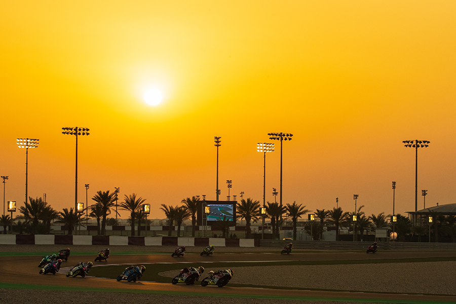 2020赛季MotoGP卡塔尔大奖赛在多哈罗塞尔赛道举行,中东的夕阳下Moto2赛车展开正赛。2017年10月22日 钱俊