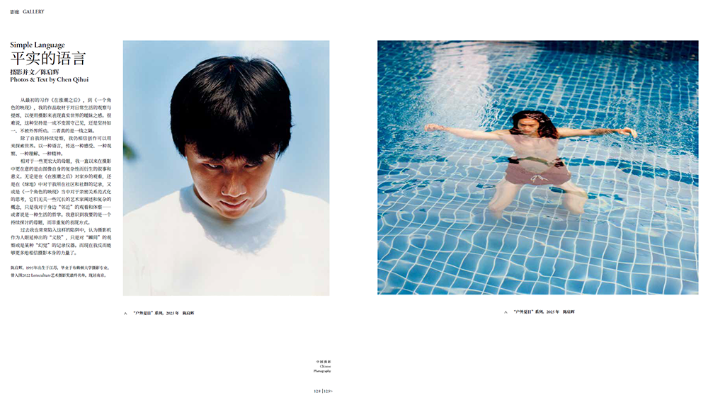 新一期杂志里 呈现以下精彩内容 专题 |水之变 水无常形,升而为气,汇而成溪。这种天然的流动性,为摄影艺术提供了丰富的表现维度。从画意想象的水,到现实景观的水,再到作为故事背景的水,不同形态的水在影像中相互交织。水的柔软与包容,让摄影的写实属性中自然多了一分写意。摄影师们由不同的地方接近水,与不同时空的水相遇,并建立起绵延的联系。在当代摄影中,水的呈现已突破传统山水画意的框架,更多与生态保护、环境变迁等现实议题相联系。水是故乡,水是生命之源,水承载着每个人独有的情感记忆。“逐水而拍” 的创作实践,不仅展现了人与自然的互动,更将水升华为沟通二者的重要媒介,让影像成为记录时代变迁的视觉诗篇。 文/孙慨 摄影观照中国大地一百余年,水,始终是影像中的重要角色。本文试图以四个历史时期影像中水的面貌和身份确立,探寻中国摄影史的另类视角。 黄河弯弯 摄影并文/陈尚志 雪的山 摄影并文/许理伟 禹的水 摄影并文/吕格尔 小浪底调水调沙 摄影并文/李更新 大洪水 摄影并文/田卫涛 南水北调移民 摄影并文/陶德斌 用水变迁记 摄影并文/任世琛 最后的渡口 摄影并文/郭建强 守望洞庭 摄影并文/周沛 渭水秋歌 摄影并文/陈团结 液态显影:时代影像与地方书写 文/李文涛 近年来,中国当代摄影涌现出一批以“水”为核心议题的创作实践,本文提出并运用“液态显影”这一兼具技术隐喻与阐释功能的框架,分析当代中国水主题摄影实践。文章循两大路径展开:一是“时代影像”路径,聚焦“人类世”背景,记录大型工程、气候变化等引发的水系统宏观危机;二是“地方书写”路径,运用人文地理学视角,深入具体地域,审视人水互动、文化景观与地方记忆。这些摄影实践不仅捕捉水的物理形态,更通过“显影”其背后复杂的时代症候、社会文化意涵与个体经验,构成了兼具文献记录与批判反思价值的视觉文本。 【档 案】 存活与生动:现代主义者张光宇的摄影世界 张光宇(1900-1965)是中国20世纪艺术史上天才横溢的大师和杂家,在不同媒介和行业中都触手生春且能融会贯通,摄影也是他终生爱好的“游戏”方式。这位中国式的现代主义艺术家,以其“游戏”精神展现了摄影的巨大潜能。 【影像与阅读】 异人江树 文/杨浪 “中国摄影家里,论文字之美好隽永,江树尤为耀目。这一行里,当然俊采星驰,人才雾列,文笔也是各逞缤纷,惟在作家、散文家中依然闪出异彩的,李江树是一个”。在本期“影像与阅读”栏目中,摄影评论家杨浪借推荐李江树新书之机,对他影像和文字的特点进行了细致的点评。 【现 场】 文/巩志明 国家艺术基金项目“大秦岭⸺生态与人文影像作品巡展”从生态、人文与个人成长史三个维度出发,试图连接传统文化与现代视觉传播的关系,表述当代摄影更需融合先锋性与本土传统,以回应中国式现代化的使命。 【论 谈】 阅后即焚与数字残响:被次生媒介加速的记忆代谢 文/海杰 【影 廊】 摄影并文/陈启辉 【器材与技术】 2025 TIPA 大奖名录 摄影并文/陈迪 用富士GFX100RF 定格马达加斯加 摄影并文/早彦铭 资讯 · 资讯 专题 水之变 · 水之变 · 水知道摄影的历史:摄影与水在中国 100 余年的凝合传播史 文/孙慨 · 黄河弯弯 摄影并文/陈尚志 · 雪的山 摄影并文/许理伟 · 禹的水 摄影并文/吕格尔 · 小浪底调水调沙 摄影并文/李更新 · 大洪水 摄影并文/田卫涛 · 南水北调移民 摄影并文/陶德斌 · 用水变迁记 摄影并文/任世琛 · 最后的渡口 摄影并文/郭建强 · 守望洞庭 摄影并文/周沛 · 渭水秋歌 摄影并文/陈团结 · 液态显影:时代影像与地方书写 文/李文涛 档案 · 存活与生动:现代主义者张光宇的摄影世界 文/高鹏宇 影像与阅读 · 异人江树 文/杨浪 现场 · 生态、人文与国家话语: “大秦岭”影像巡展的叙事实验 文/巩志明 论谈 · 阅后即焚与数字残响:被次生媒介加速的记忆代谢 文/海杰 影廊 · 平实的语言 摄影并文/陈启辉 · 后山 摄影并文/王培权 器材与技术 · 2025 TIPA 大奖名录 · 专业之光―― 佳能 EOS R1 2025 F1 中国大奖赛实战记录 摄影并文/陈迪 · 奇幻瞬间―― 用富士GFX100RF 定格马达加斯加 摄影并文/早彦铭